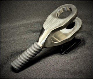 Clevises are another sub category of machined components that AllPower provides. They are similar to Rod End Bodies in that they often have a threaded shaft, but instead of having an single circular bore, they have a fork that has two circular holes which bushings are installed in.