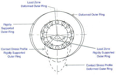 The outer rings of regular ball and roller bearings are typically mounted in rigid housings providing support around the entire circumference. Individual roller forces are transmitted through the outer ring directly into the housing with no major deformations.