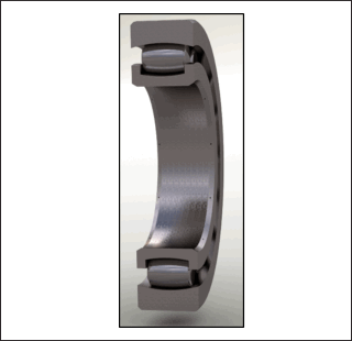 Hourglass bearings are great for high load applications. This is due to the line contact that helps spread the load through the race way. These are also optimal for shaft misalignment.