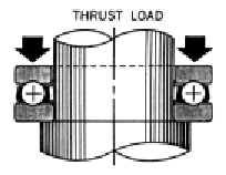 Thrust bearings carry loads applied parallel to the axis of the bearing bore. They are not designed to ac-commodate radial loads |
