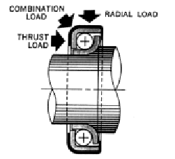 Combination radial and thrust bearings are designed for simultaneously applied thrust and radial loads. Combination assemblies will also carry pure thrust loading; however, they are not recommended for straight radial loads unless provisions are made to keep the inner rings and outer rings in proper contact with the balls. |