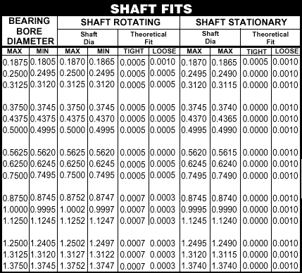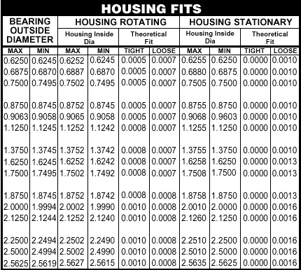 Proper mounting fits of ball bearings to shafts and in housings are critical to their performance. Excessively tight or excessively loose fits can result in premature bearing failures. Recommended fit values have been established which will facilitate optimum bearing performance.