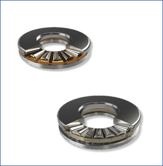 Tapered thrust bearings utilize a full component of rollers to maximize load capacity and minimize roller skewing. RBC Bearings produces and stocks this product in sizes up to 3‘’ bore diameter.