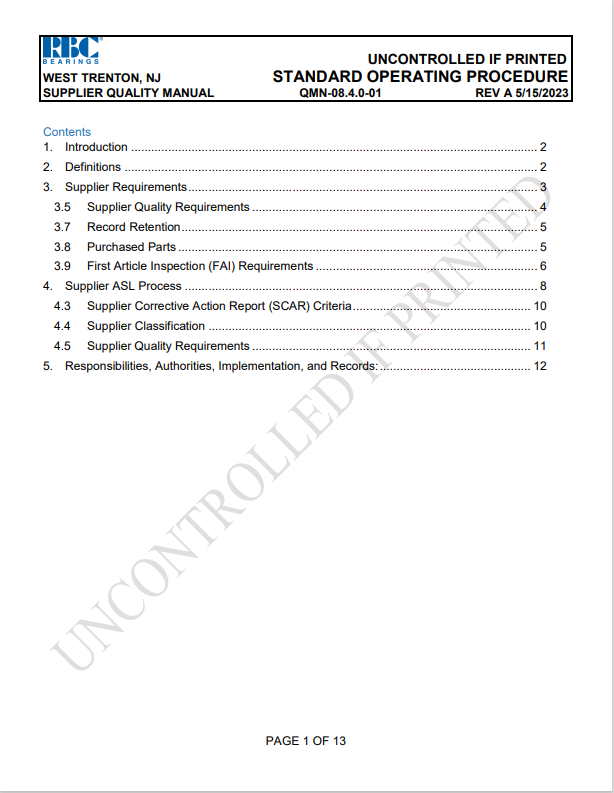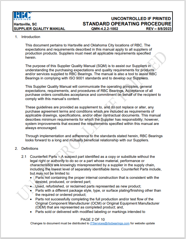 400 Sullivan Way, West Trenton, NJ 08628RBCService@RBCBearings.com Phone: (609) 882-5050