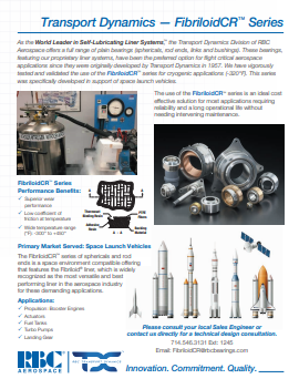 The FibriloidCR™ series of cryogenic rated bearings and rod ends features the proprietary Fibriloid® liner, which is widely recognized as the most versatile and best performing self-lubricating liner in the aerospace industry. The FibriloidCR™ series has been tested and flight proven to support rigorous application requirements assuring optimal performance in space environments