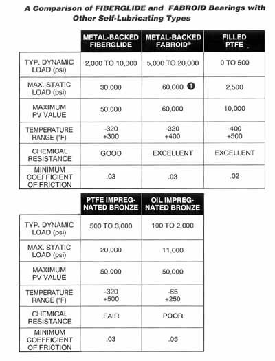 | A Comparison of FIBERGLIDE® and FABROID Bearings with Other Self-Lubricating Types | |||||