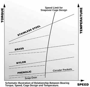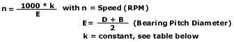 The limiting speed of a bearing is dependent upon a number of different factors including bearing size, bearing type, ball separator design, lubrication and loading. The limiting speeds for the bearings shown in this catalog are determined using the following: