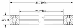 The DYNAMIC THRUST and DYNAMIC MOMENT LOAD RATINGS are also shown in the product tables. The ratings shown are a guide for the maximum loads under which these bearings should be operated with either pure thrust or pure moment loading. Thrust ratings are 2.5 to 3.0 times the radial ratings depending on the bearing type and cross section. These load ratings are not additive. For combined radial and thrust loads, an equivalent radial load is to be calculated.